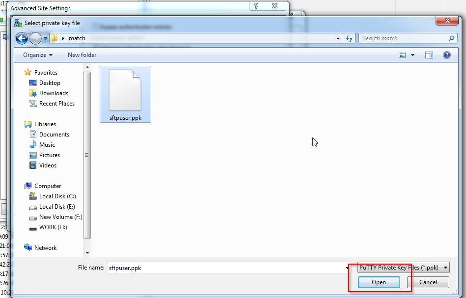 Find the public key file you downloaded on step 2 and click Open