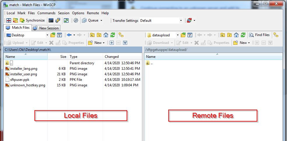 You will now see the main sftp screen where you can upload/download files.